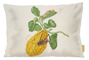 Poduszka Cytryna z gąsienicą małpy i chrząszczem harlekin Maria Sibylla Merian