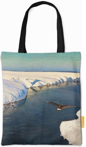 Torba na ramię Pejzaż zimowy z rzeką i ptakiem Julian Fałat