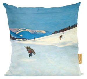 Poduszka Pejzaż zimowy z rzeką i ptakiem Julian Fałat