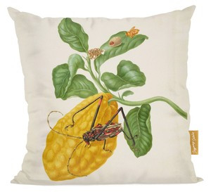 Poduszka Cytryna z gąsienicą małpy i chrząszczem harlekin Maria Sibylla Merian