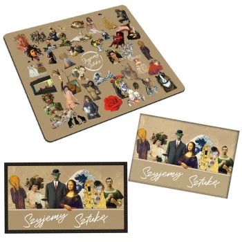 Zestaw prezentowy Szyjemy Sztukę podkładka + magnes + naszywka