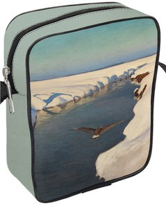 Torba na ramię Pejzaż zimowy z rzeką i ptakiem Julian Fałat