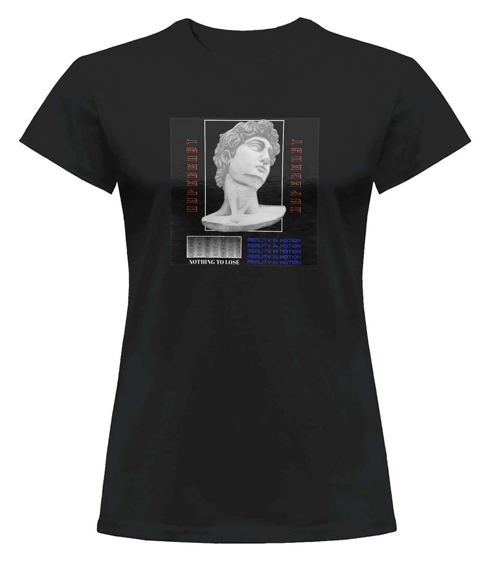 Bluzka ma damski, dopasowany krój z bardzo krótkimi rękawkami. Naszywka, która jest niezaprzeczalnym centrum uwagi tej bluzki, wykonana jest z przyjemnego w dotyku materiału. Dzięki tej starannie dobranej kombinacji materiałów, nadruk jest nie tylko wyrazisty i szczegółowy, ale także trwały zachowując swoje intensywne kolory nawet po wielu praniach.