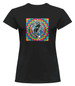 Bluzka ma damski, dopasowany krój z bardzo krótkimi rękawkami. Naszywka, która jest niezaprzeczalnym centrum uwagi tej bluzki, wykonana jest z przyjemnego w dotyku materiału. Dzięki tej starannie dobranej kombinacji materiałów, nadruk jest nie tylko wyrazisty i szczegółowy, ale także trwały zachowując swoje intensywne kolory nawet po wielu praniach.