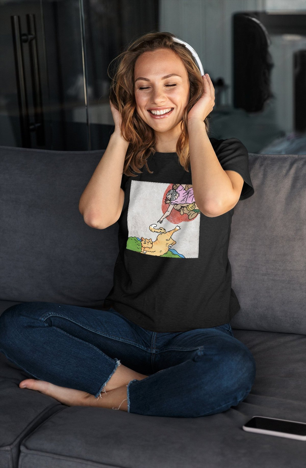 Bluzka damska z naszywką CAT PARODY: Stworzenie Adama