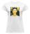 Bluzka ma damski, dopasowany krój z bardzo krótkimi rękawkami. Naszywka, która jest niezaprzeczalnym centrum uwagi tej bluzki, wykonana jest z przyjemnego w dotyku materiału. Dzięki tej starannie dobranej kombinacji materiałów, nadruk jest nie tylko wyrazisty i szczegółowy, ale także trwały zachowując swoje intensywne kolory nawet po wielu praniach.