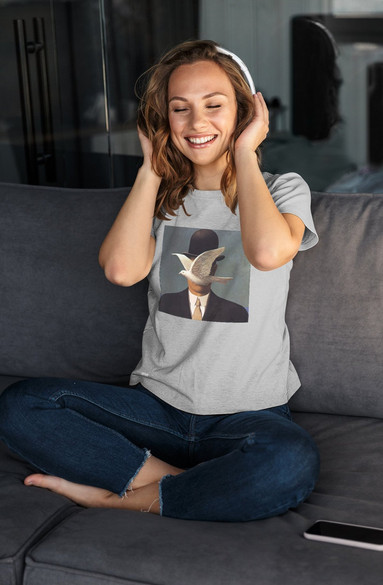 Bluzka damska z naszywką Mężczyzna w meloniku René Magritte