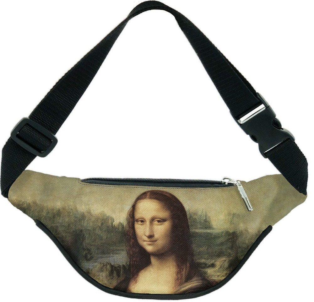 Ta wyjątkowa torba biodrówka zdobi się reprodukcją dzieła „Mona Lisa Leonardo” autorstwa da Vinci. Dzięki nowoczesnemu nadrukowi FullPrint torba zachowuje intensywność kolorów, sprawdzając się zarówno jako stylowy dodatek, jak i praktyczny element codziennego ubioru dla każdego fana sztuki.