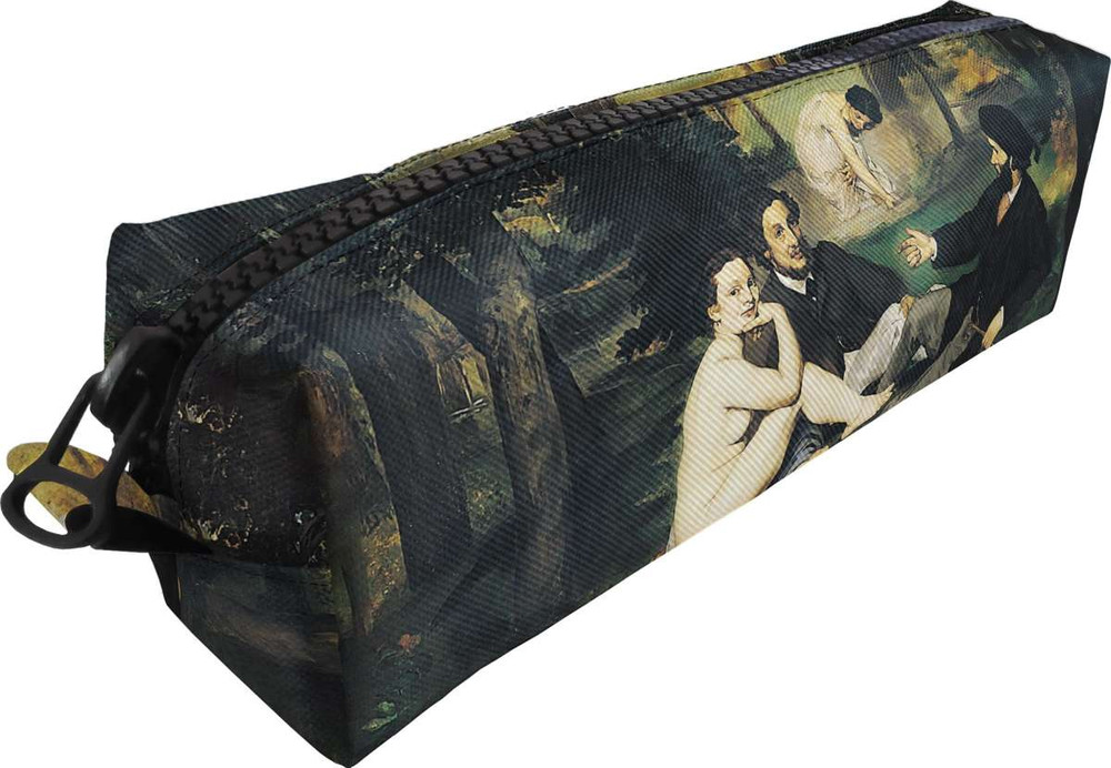 Na piórniku widnieje reprodukcja obrazu "Śniadanie na trawie" autorstwa Édouard Manet. To jedno z najbardziej znanych dzieł tego artysty, które powstało w 1863 roku. Obraz jest uważany za jeden z kamieni milowych w historii malarstwa. Oryginał jest obecnie przechowywany w Musée d'Orsay w Paryżu. Manet, jako jeden z prekursorów impresjonizmu, w swoim obrazie zdecydował się na odważne przedstawienie nagiej kobiety w towarzystwie dwóch ubranych mężczyzn. Obraz wzbudzał wiele kontrowersji, ale z czasem stał się symbolem nowoczesności i odwagi artystycznej.