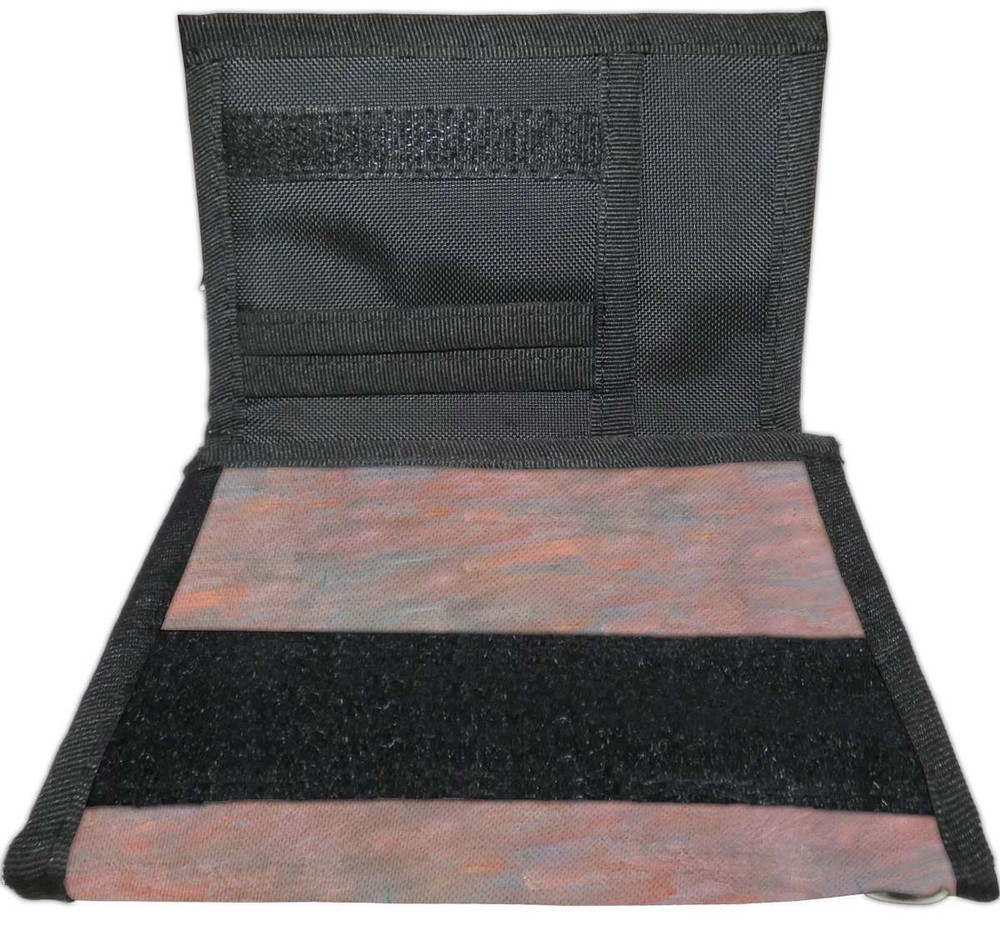 - Portfel zapinany jest na rzep, oraz posiada otwór na łańcuch, lub breloczek np. z kluczami.