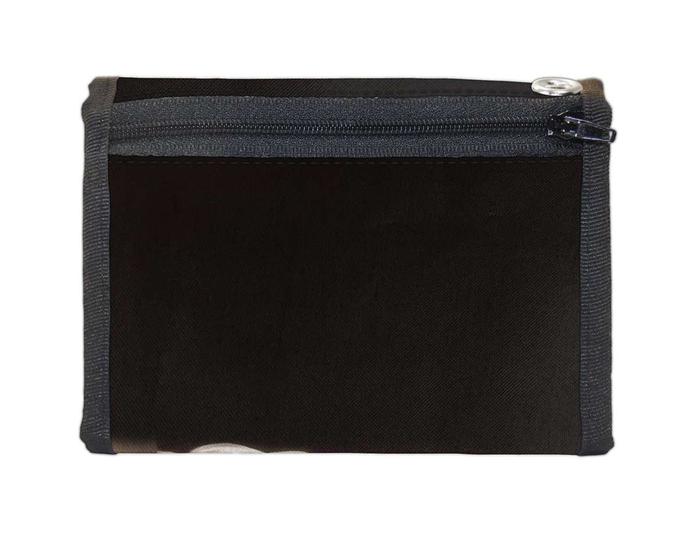 - Portfel posiada aż 10 przegródek, w tym przegródki na dokumenty, banknoty, karty, oraz przezroczyste miejsca na zdjęcia. Przegródka na drobne zamykana jest na suwak. W portfelu bez problemu mieści się dowód rejestracyjny, jak i legitymacja szkolna.