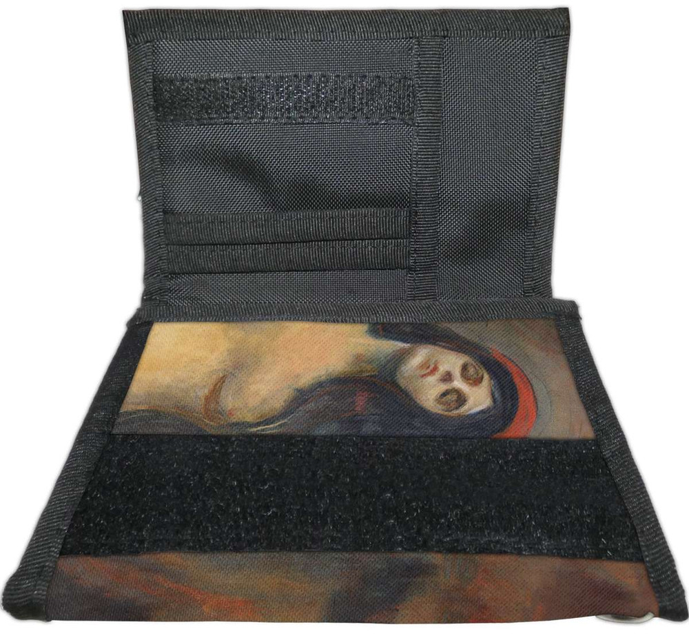 • Portfel zapinany jest na rzep, oraz posiada otwór na łańcuch, lub breloczek np. z kluczami.
