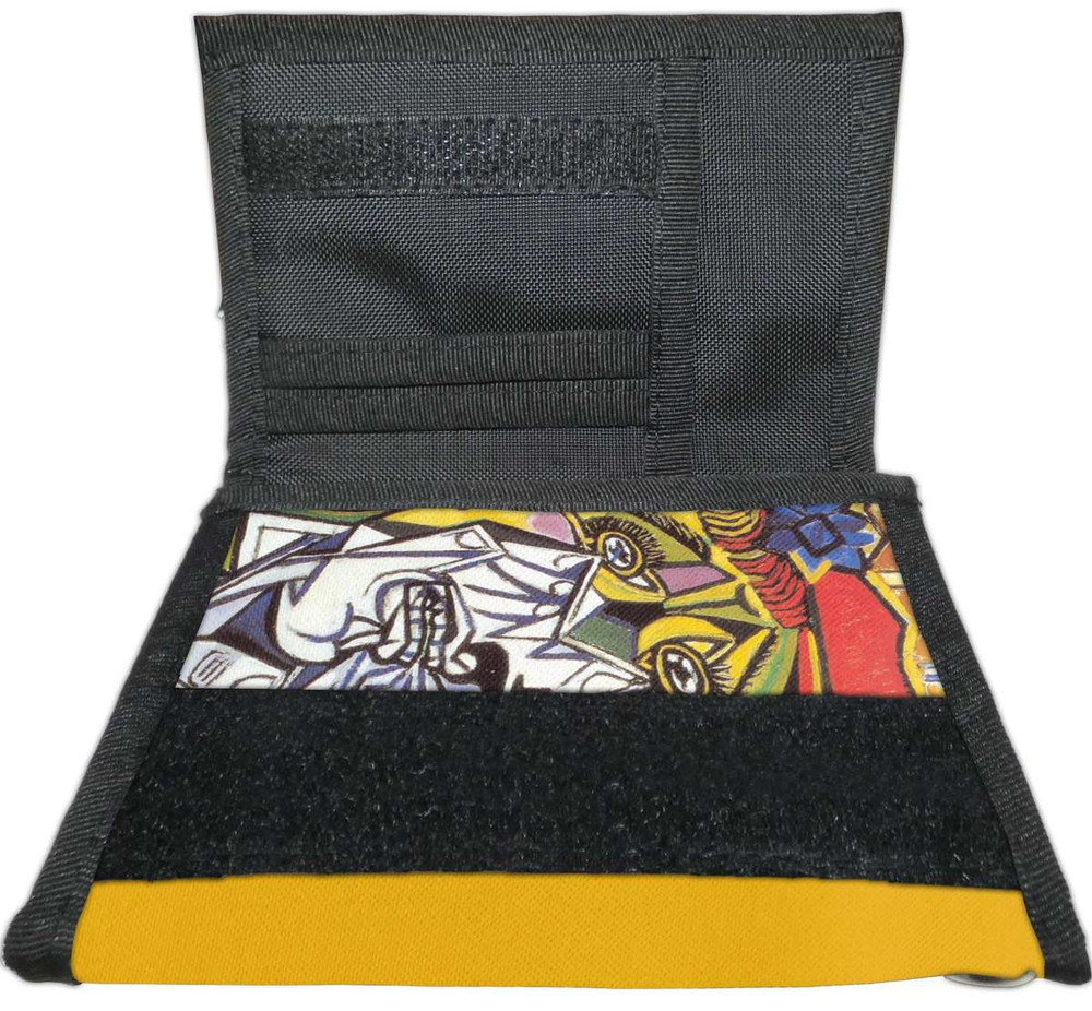 - Portfel zapinany jest na rzep, oraz posiada otwór na łańcuch, lub breloczek np. z kluczami.