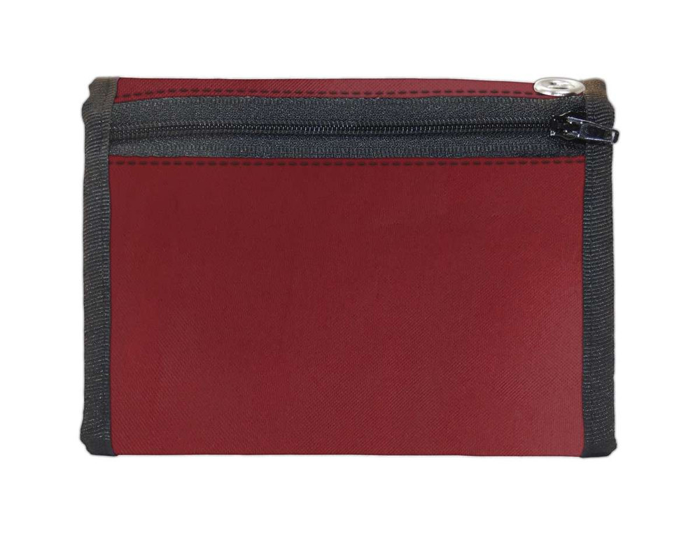 - Portfel posiada aż 10 przegródek, w tym przegródki na dokumenty, banknoty, karty, oraz przezroczyste miejsca na zdjęcia. Przegródka na drobne zamykana jest na suwak. W portfelu bez problemu mieści się dowód rejestracyjny, jak i legitymacja szkolna.