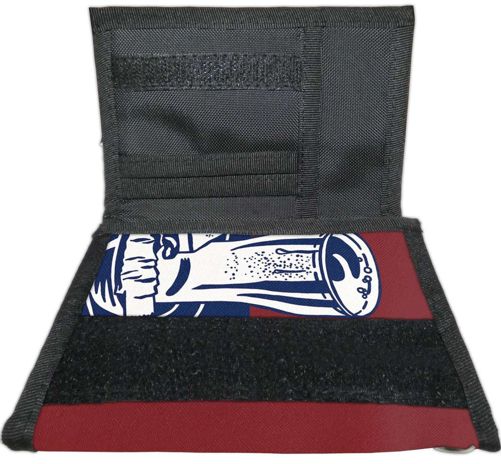 - Portfel zapinany jest na rzep, oraz posiada otwór na łańcuch, lub breloczek np. z kluczami.