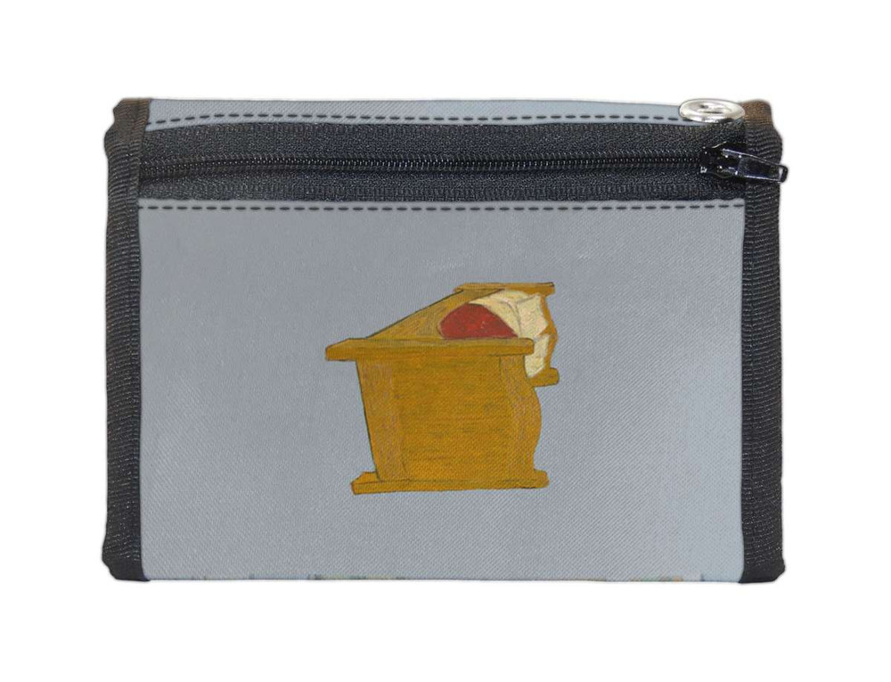 - Portfel posiada aż 10 przegródek, w tym przegródki na dokumenty, banknoty, karty, oraz przezroczyste miejsca na zdjęcia. Przegródka na drobne zamykana jest na suwak. W portfelu bez problemu mieści się dowód rejestracyjny, jak i legitymacja szkolna.