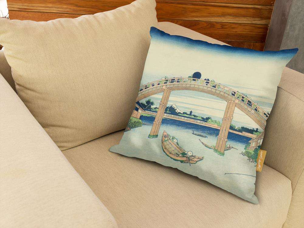 Poduszka Pod mostem Mannen w Fukagawa Katsushika Hokusai
