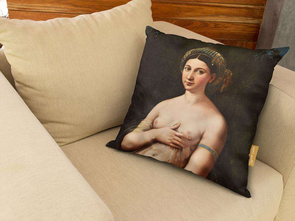 - Poduszka ma rozmiar 40 x 40 cm. Grafika jest po obu stronach poduszki.