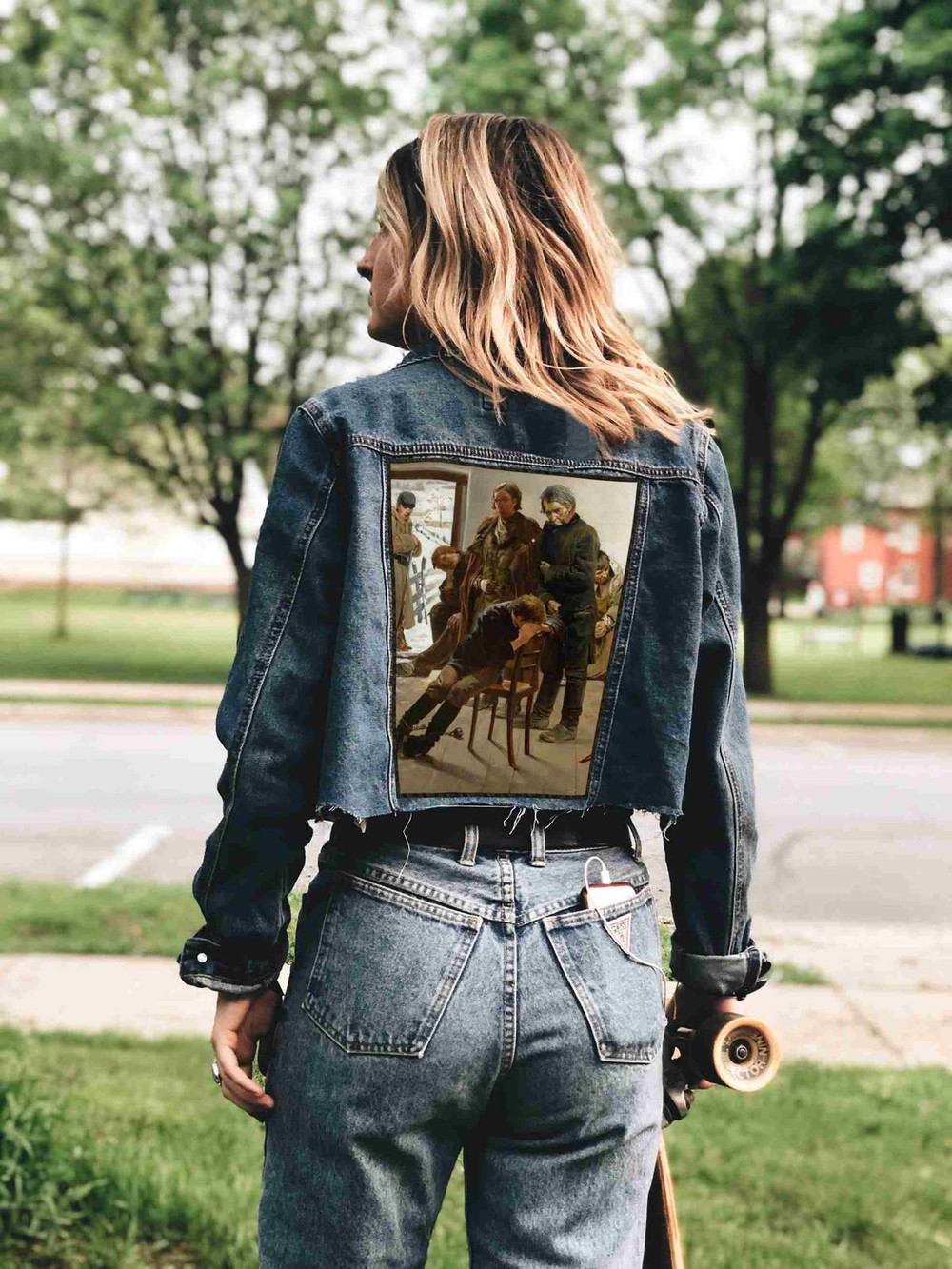 Naszywka umieszczona na plecach prezentuje się imponująco i przyciąga uwagę z daleka. Jej rozmiar, wyraziste detale i kolory wyróżniają ją w tłumie.