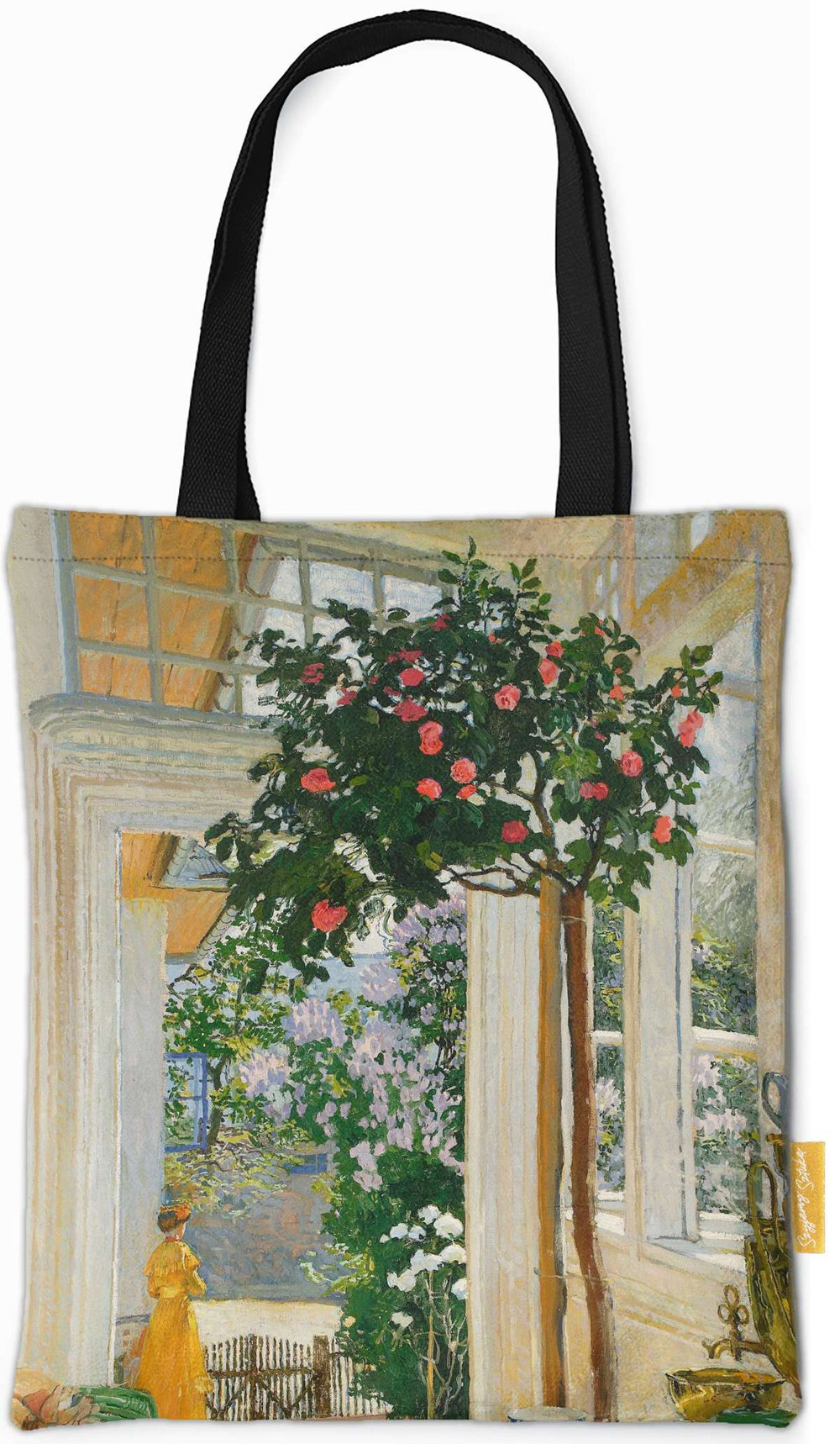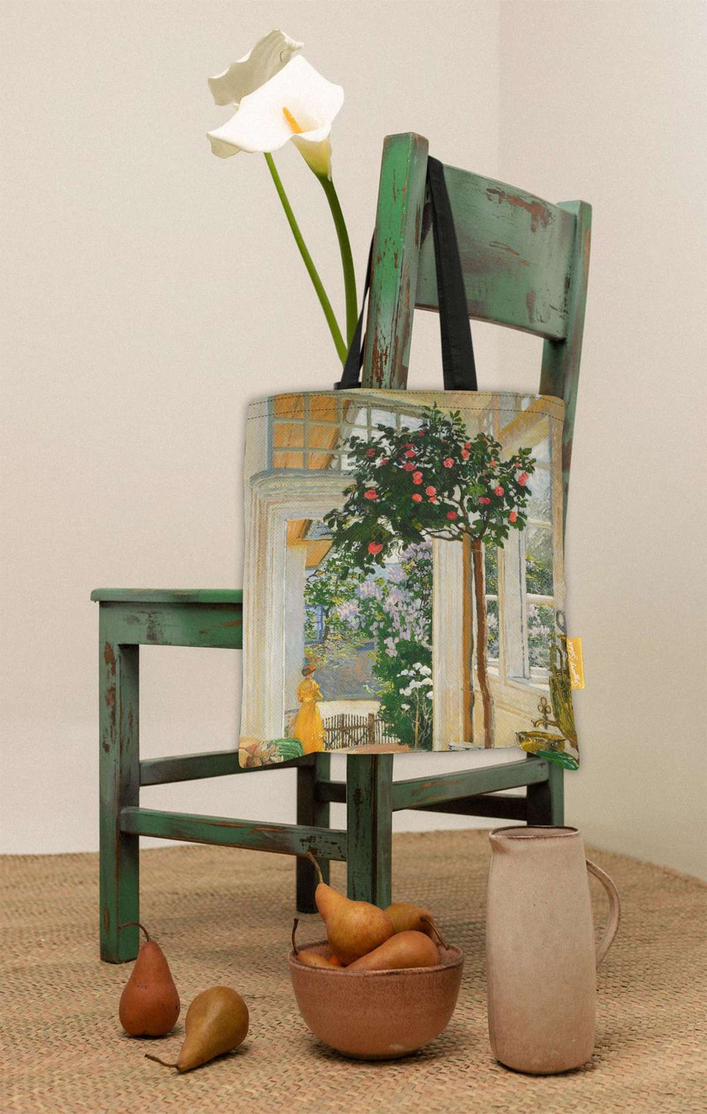 Torba ,,Dziwny ogród" J.Mehoffera jest w zbyt ciemnej kolorystyce. Suknia i kapelusz kobiety są właściwie czarne, zamiast niebieskie. Pozostałe kolory również brudnawe, przytłumione- twarz kobiety, zieleń, czerwień. Tkanina jest ok, mocna ale kolory są dużym rozczarowaniem. To przecież druk pięknego obrazu. Nie polecam. ,,Dwie siostry" Renoir'a, są ok. Żywe, piękne kolory.