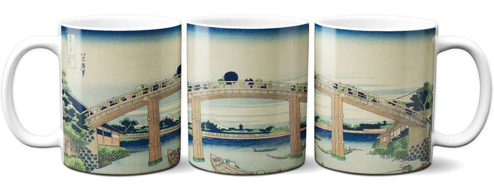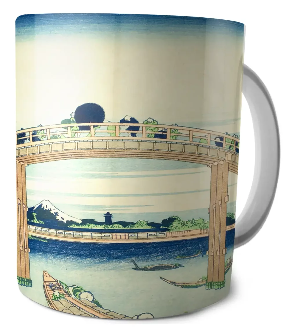Kubek Pod mostem Mannen w Fukagawa Katsushika Hokusai