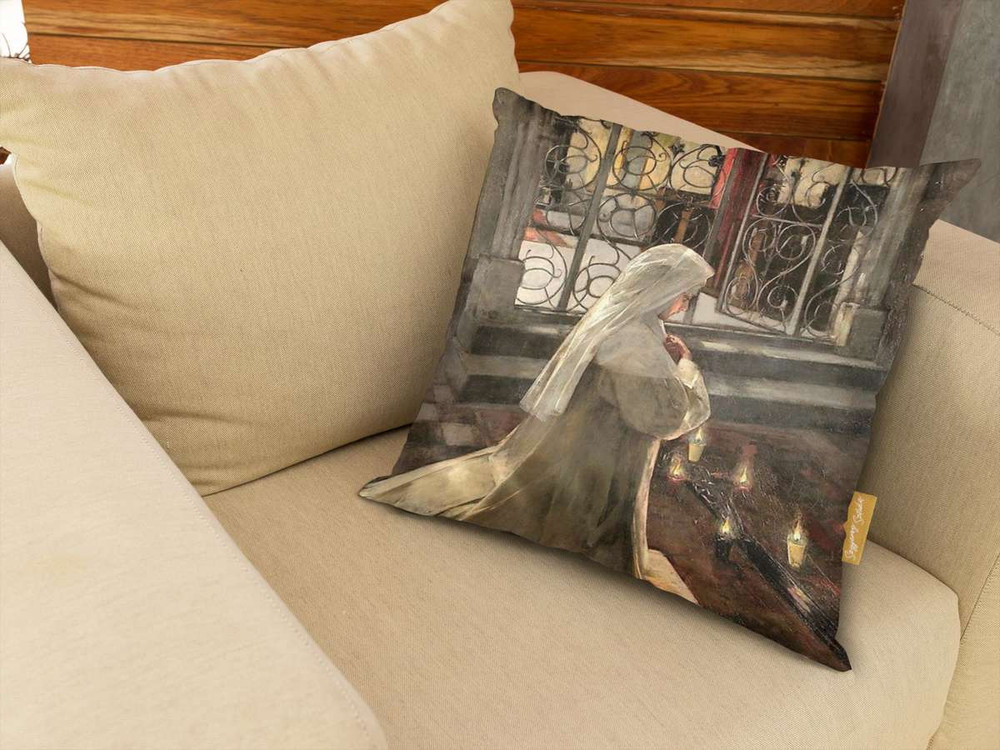 - Poduszka ma rozmiar 40 x 40 cm. Grafika jest po obu stronach poduszki.
