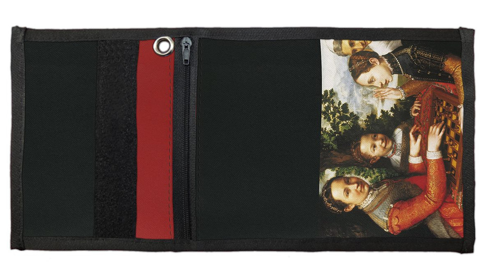 - Portfel zapinany jest na rzep, oraz posiada otwór na łańcuch, lub breloczek np. z kluczami.