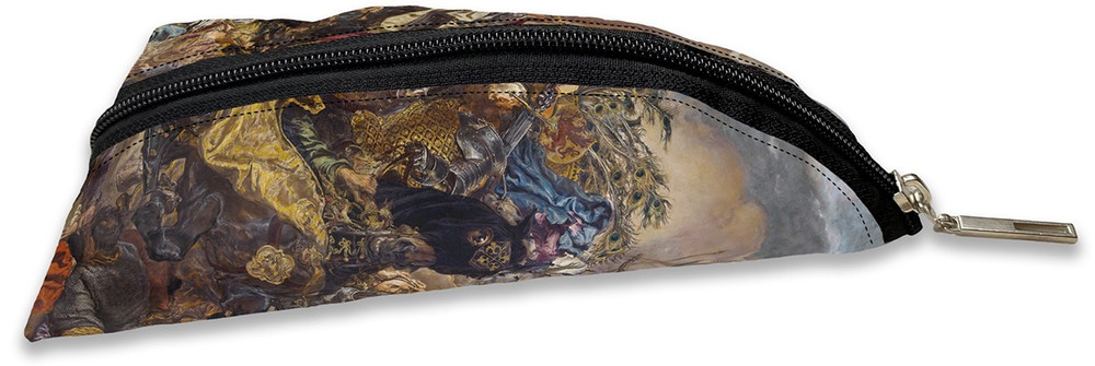 Ten wyjątkowy piórnik to prawdziwe połączenie sztuki i funkcjonalności. Jego unikalny, trójkątny kształt zapewnia wygodny dostęp do zawartości, a zamek błyskawiczny gwarantuje bezpieczne przechowywanie Twoich narzędzi do pisania. Ale to nie wszystko! Ten piórnik jest nie tylko praktyczny, ale również piękny - pokrywa go reprodukcja jednego z najważniejszych obrazów w historii polskiego malarstwa - "Bitwa pod Grunwaldem" autorstwa Jana Matejki.
