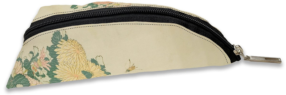 Na piórniku znajduje się reprodukcja "Chryzantem i pszczoły", jednego z najbardziej znanych obrazów Katsushika Hokusai. Ten japoński artysta z XVIII wieku jest szczególnie znany z serii "36 widoków na górę Fuji", ale to właśnie "Chryzantemy i pszczoła" jest jednym z jego najbardziej ulubionych dzieł. Oryginał tego obrazu jest obecnie przechowywany w Muzeum Sztuki w Bostonie i jest jednym z najcenniejszych obiektów w ich kolekcji.