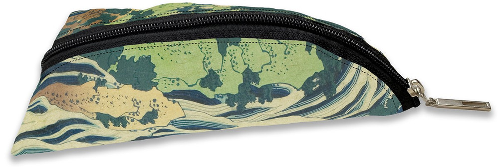 Ten piórnik, w kształcie trójkąta, jest wyjątkowy nie tylko z powodu swojego nietypowego designu. Na zewnątrz znajduje się reprodukcja jednego z najbardziej znanych obrazów Katsushika Hokusai - "Wodospad Kirifuri na górze Kurokami w prowincji Shimotsuke". Hokusai, jednym z najbardziej wpływowych artystów Japonii, jest znany ze swojego unikalnego stylu, który teraz możesz mieć zawsze przy sobie.
