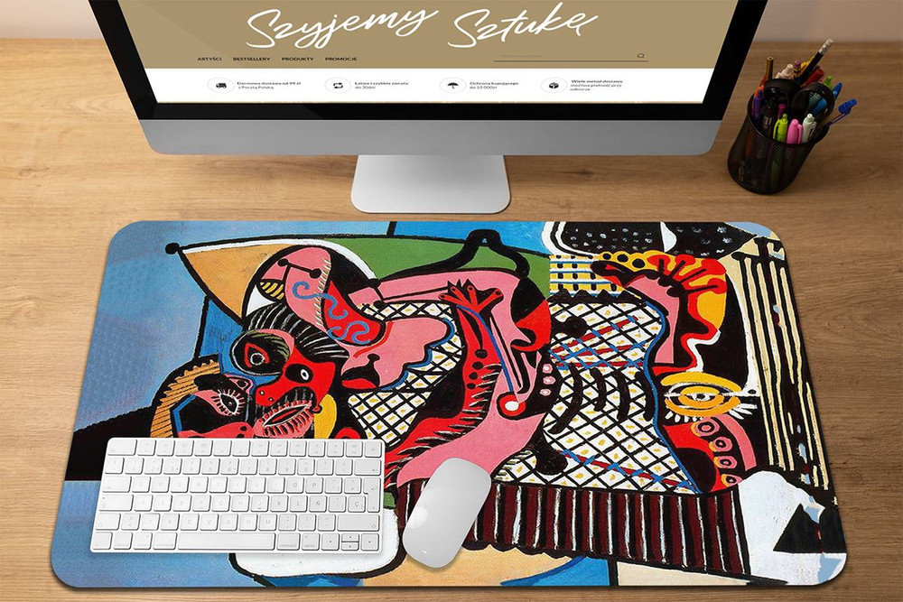 Podkładka pod mysz z nadrukiem na biurko. Rozmiar podkładki to 60 x 40 cm.