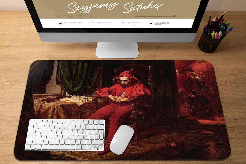 Podkładka pod mysz z nadrukiem na biurko. Rozmiar podkładki to 60 x 40 cm.