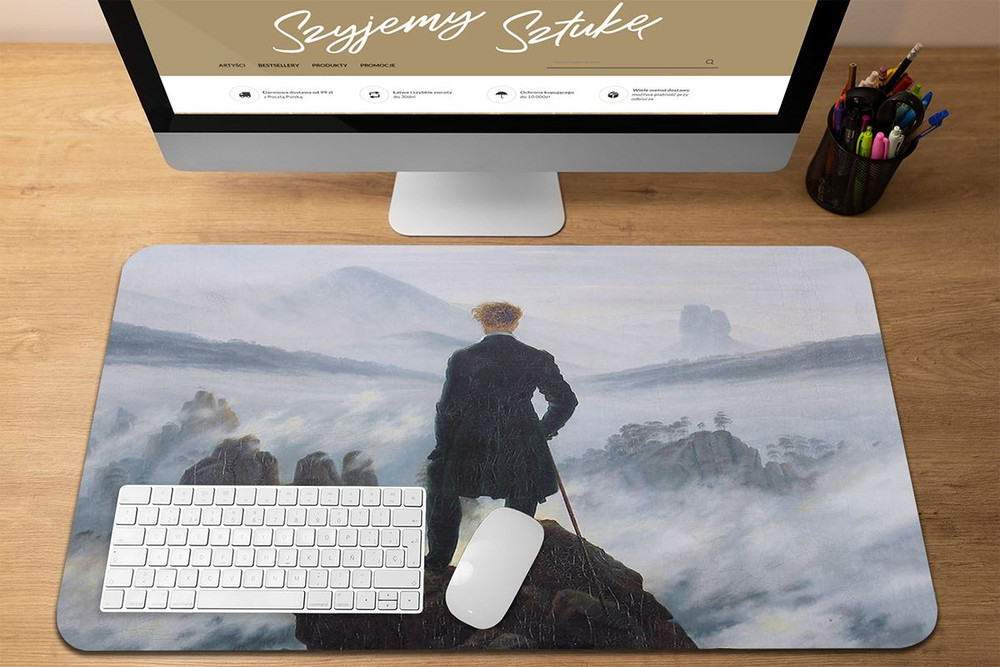 - Podkładka pod mysz w rozmiarze 60 x 40 cm. Praktyczna podkładka mata na biurko, która oprócz praktycznego zastosowania dodatkowo ozdobi Twoje biurko wyjątkowym dziełem sztuki.