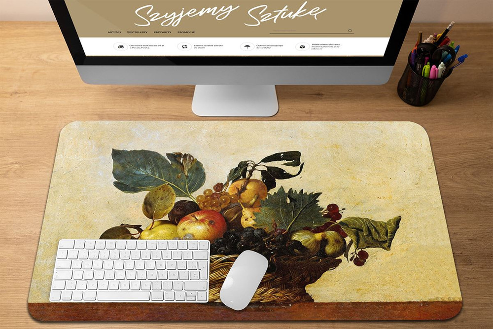 Podkładka pod mysz z nadrukiem na biurko. Rozmiar podkładki to 60 x 40 cm.