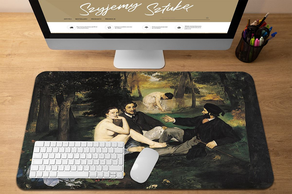 Podkładka pod mysz z nadrukiem na biurko. Rozmiar podkładki to 60 x 40 cm.