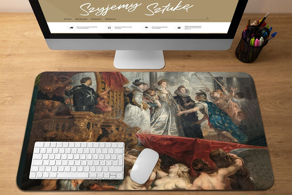 • Podkładka pod mysz w rozmiarze 60 x 40 cm. Praktyczna podkładka mata na biurko, która oprócz praktycznego zastosowania dodatkowo ozdobi Twoje biurko wyjątkowym dziełem sztuki.