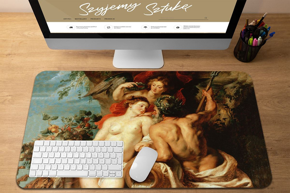 - Podkładka pod mysz w rozmiarze 60 x 40 cm. Praktyczna podkładka mata na biurko, która oprócz praktycznego zastosowania dodatkowo ozdobi Twoje biurko wyjątkowym dziełem sztuki.