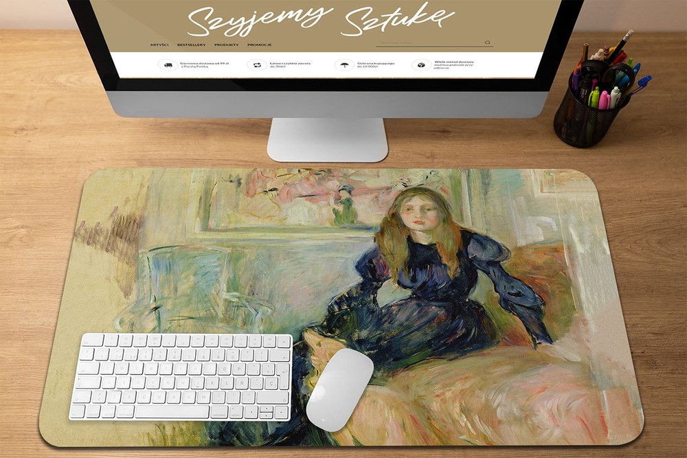 Podkładka pod mysz z nadrukiem na biurko. Rozmiar podkładki to 60 x 40 cm.
