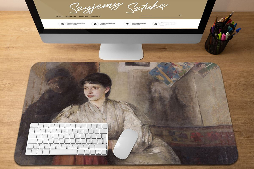 Podkładka pod mysz z nadrukiem na biurko. Rozmiar podkładki to 60 x 40 cm.