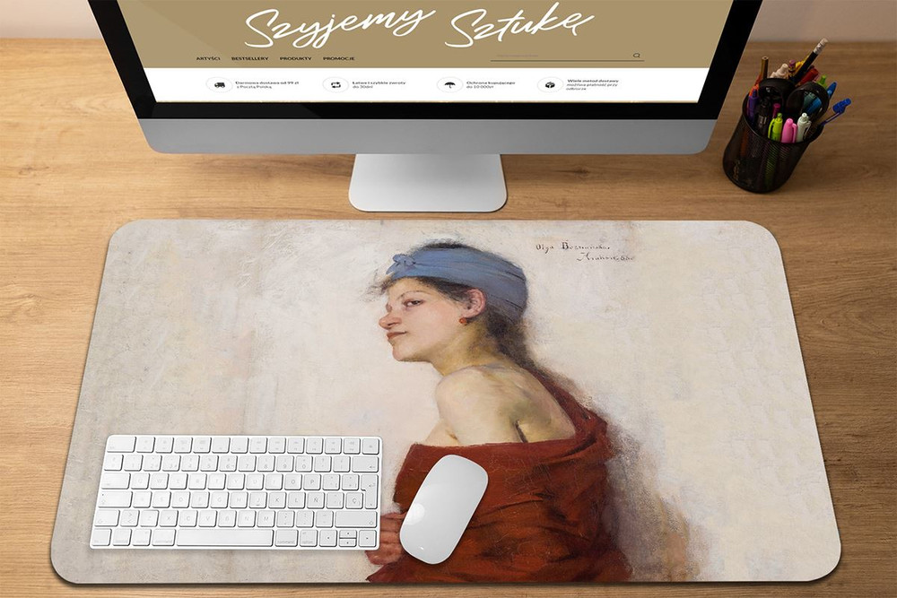 - Podkładka pod mysz w rozmiarze 60 x 40 cm. Praktyczna podkładka mata na biurko, która oprócz praktycznego zastosowania dodatkowo ozdobi Twoje biurko wyjątkowym dziełem sztuki.