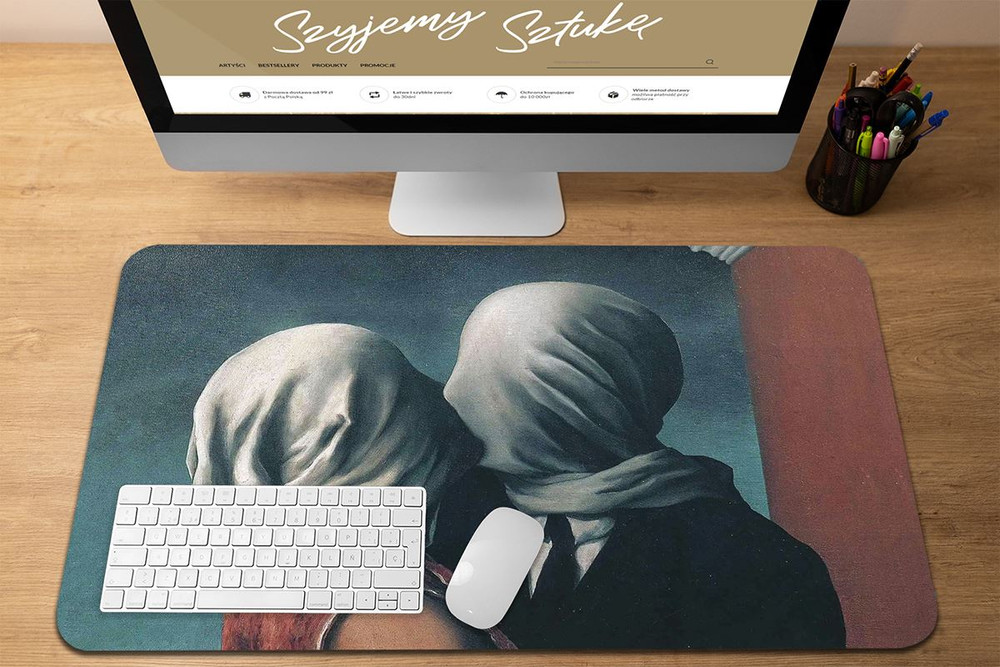 Podkładka pod mysz z nadrukiem na biurko. Rozmiar podkładki to 60 x 40 cm.