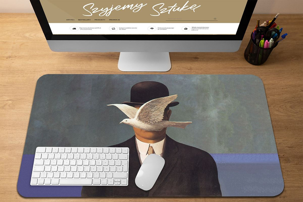 Podkładka pod mysz z nadrukiem na biurko. Rozmiar podkładki to 60 x 40 cm.