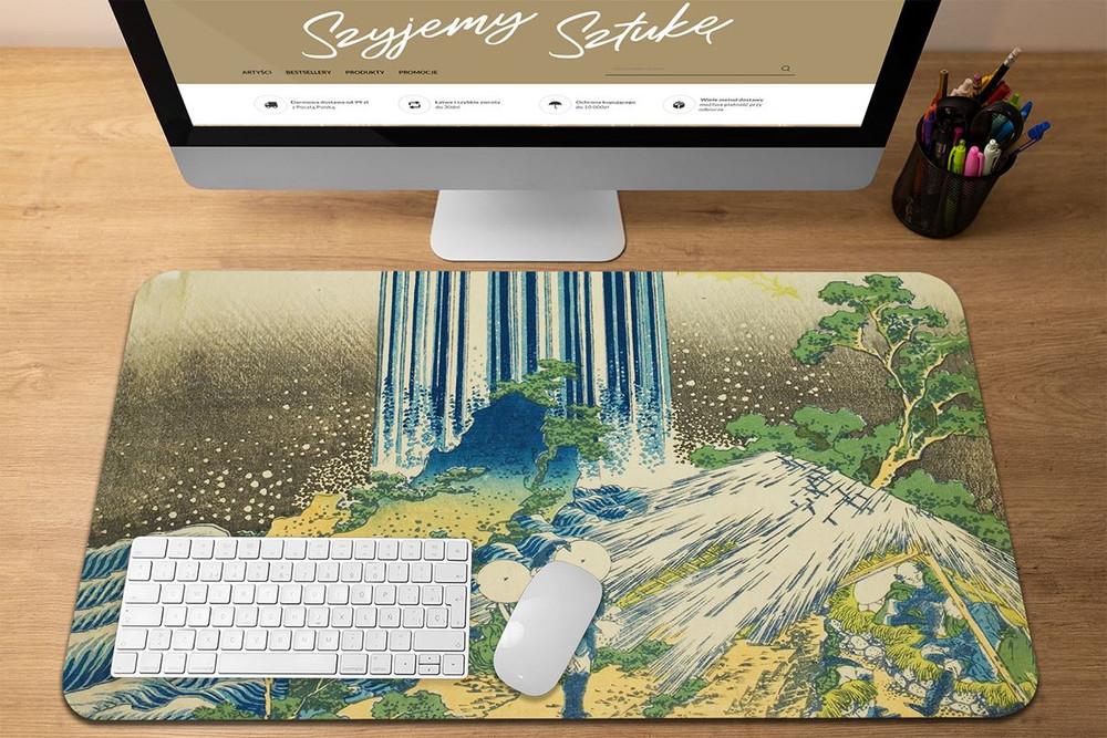 - Podkładka pod mysz w rozmiarze 60 x 40 cm. Praktyczna podkładka mata na biurko, która oprócz praktycznego zastosowania dodatkowo ozdobi Twoje biurko wyjątkowym dziełem sztuki.