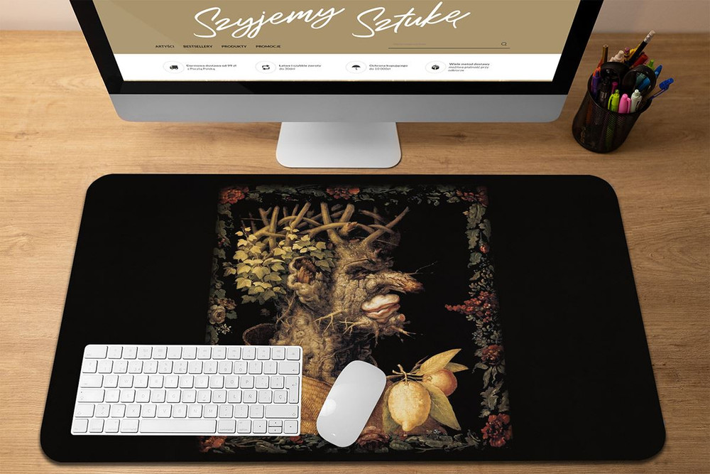 - Podkładka pod mysz w rozmiarze 60 x 40 cm. Praktyczna podkładka mata na biurko, która oprócz praktycznego zastosowania dodatkowo ozdobi Twoje biurko wyjątkowym dziełem sztuki.