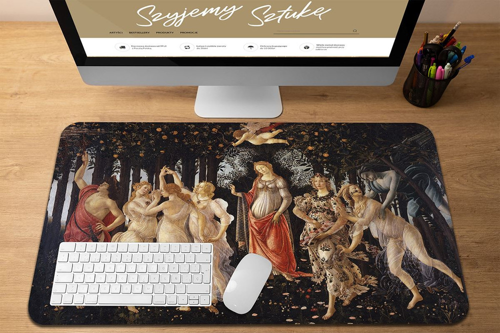 - Podkładka pod mysz w rozmiarze 60 x 40 cm. Praktyczna podkładka mata na biurko, która oprócz praktycznego zastosowania dodatkowo ozdobi Twoje biurko wyjątkowym dziełem sztuki.