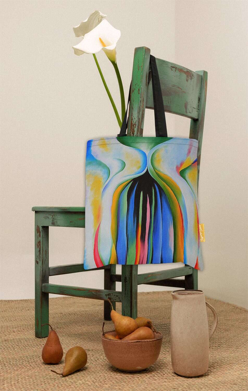 Torba na ramię Szare linie z czarnym, niebieskim i żółtym Georgia O’Keeffe