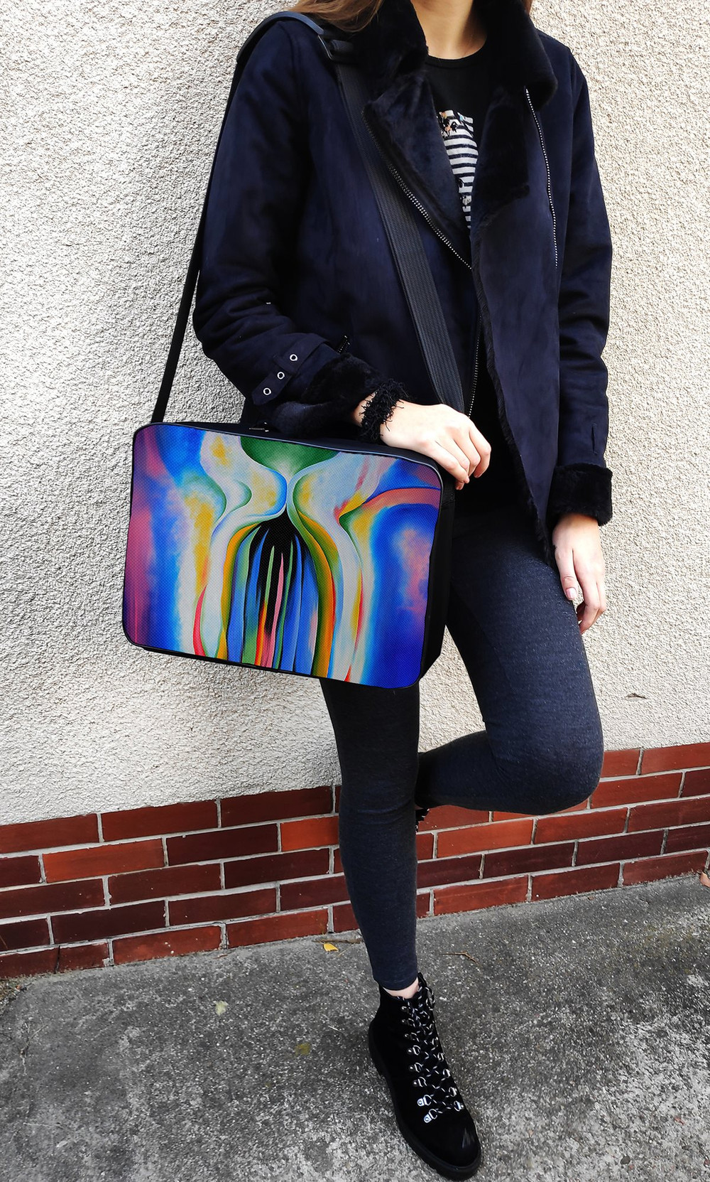 Torba na ramię Szare linie z czarnym, niebieskim i żółtym Georgia O’Keeffe