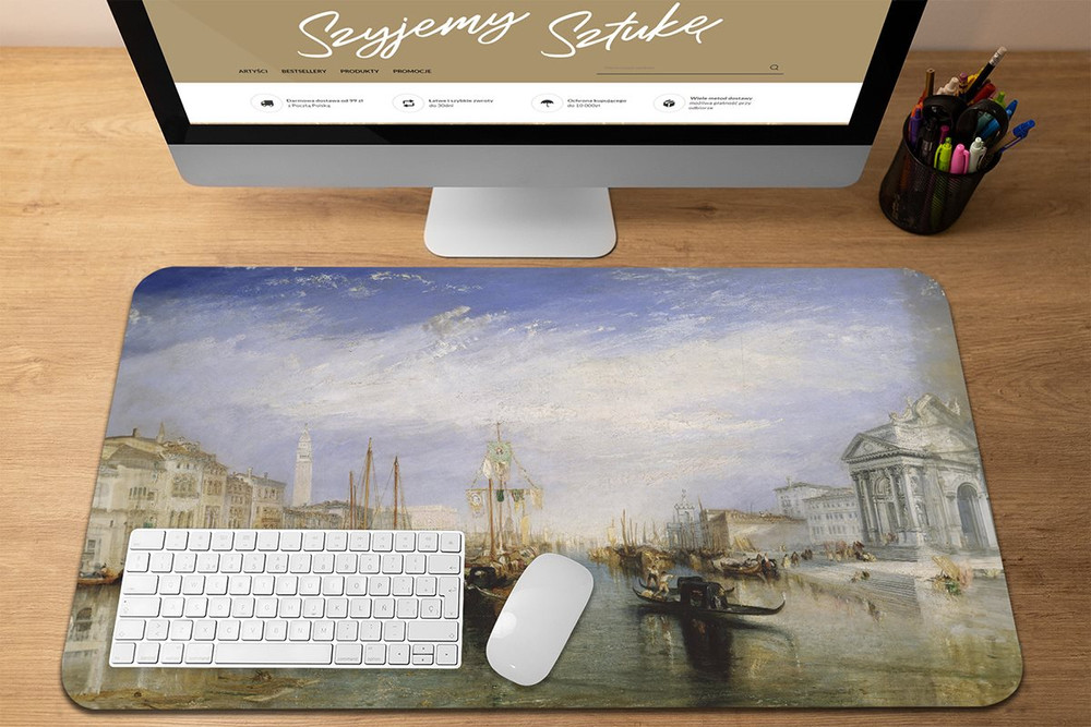 - Podkładka pod mysz w rozmiarze 60 x 40 cm. Praktyczna podkładka mata na biurko, która oprócz praktycznego zastosowania dodatkowo ozdobi Twoje biurko wyjątkowym dziełem sztuki.