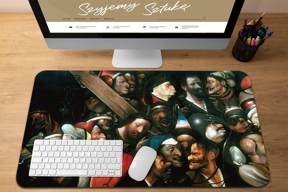 - Podkładka pod mysz w rozmiarze 60 x 40 cm. Praktyczna podkładka mata na biurko, która oprócz praktycznego zastosowania dodatkowo ozdobi Twoje biurko wyjątkowym dziełem sztuki.