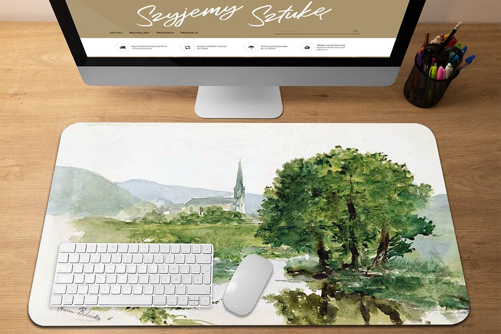 Podkładka pod mysz z nadrukiem na biurko. Rozmiar podkładki to 60 x 40 cm.
